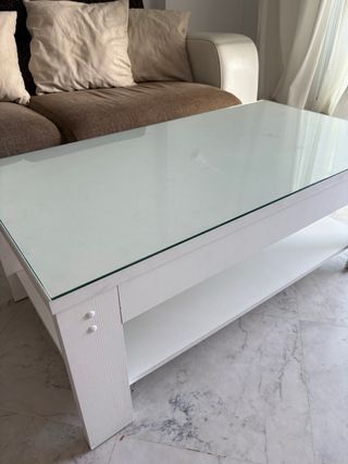 Mesa de centro blanca con cristal