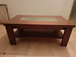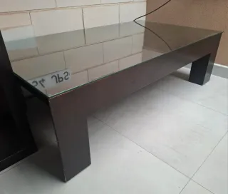 Mesa de centro con superficie de cristal y estructura de madera. - Diseño moderno y funcional. - Patas robustas para mayor estabilidad.Precio no negociable