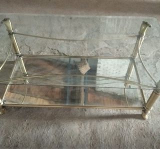 Mesa de cristal y metal dorada