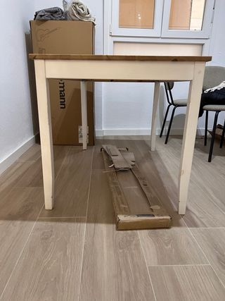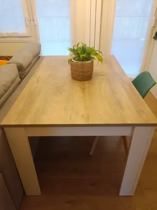 Mesa de comedor extensible de madera, ideal para espacios reducidos. - Diseño moderno y funcional. - Falta la tabla extensible.