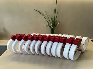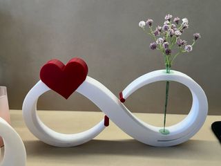 Elegante florero con diseño de infinito y corazón, ideal para decorar mesas en bodas o cualquier ocasión especial. 12 unidades - Diseño moderno en forma de infinito. - Adorno de corazón rojo. - Base para flores.