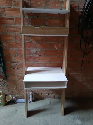 Mesa de pared plegable, ideal para espacios reducidos. Se pliega fácilmente para ahorrar sitio. - Tablero de madera con acabado natural. - Estructura de soporte metálica. Nueva prácticamente