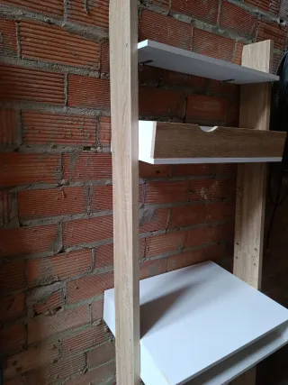 Mesa auxiliar de madera con un diseño clásico y elegante. - Estructura de madera robusta. - Un cajón con tirador. - Dos estantes adicionales para almacenamiento. - Patas torneadas decorativas. Ideal para restaurar aunque está muy bien de pintura.