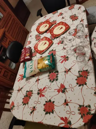 Conjunto de mesa camilla con ropa y cristal, todo nuevo sin estrenar. - Incluye mesa camilla. - Ropa de mesa a juego. - Cristal protector de regalo . El cristal tiene un pequeño picotazo en esquina.