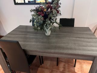 Conjunto de muebles de IKEA: mesa ampliable BJURSTA (90x90, ampliable a 130 y 170), cristal protector y 4 sillas BORJE. Todo muy cuidado y en muy buen estado.