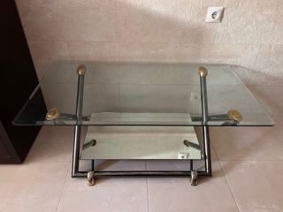Mesa de cristal y madera el cristal muy delicado