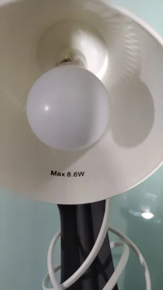Lámpara de mesa con un diseño moderno y elegante. Ideal para cualquier espacio. - Potencia máxima: 8.6W. - Bombilla esférica blanca.