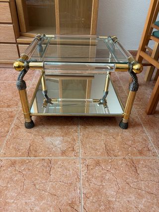 Mesita de salón cristal y metal dorado