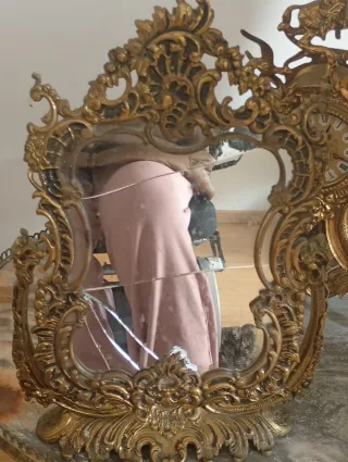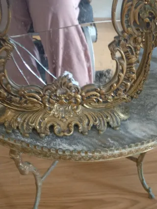 Espejo de mesa dorado antiguo tiene el espejo roto