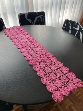 Tapete ganchillo rosa camino de mesa 114 x 24 cms