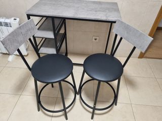 Mesa alta para cocina con dos taburetes. Medidas en las fotos.