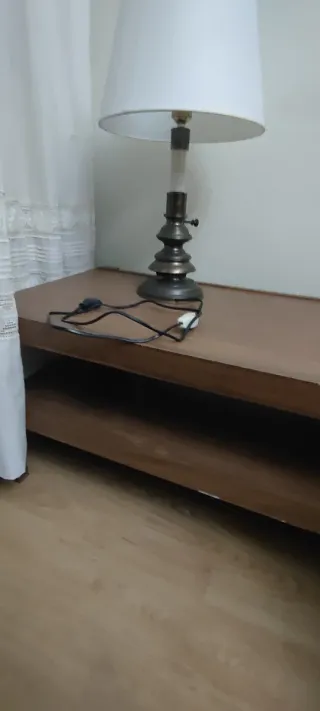 mesa de centro salón, con algunas marcas de uso pero en buen estado. - Estructura de madera robusta. - Superficie de cristal transparente. A recoger en Pontedeume