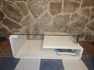 Mesa de centro cristal y blanca