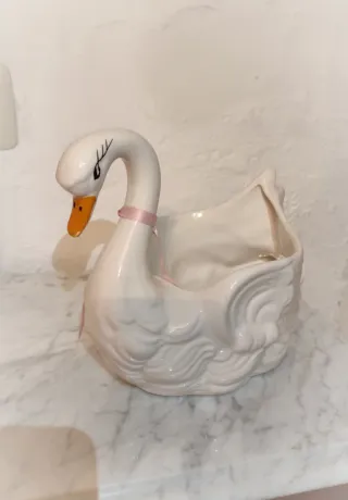 Bonito cisne decorativo, ideal para dar un toque especial a cualquier rincón. - Diseño elegante en forma de cisne. - Acabado brillante. - Sirve para dejar cosas dentro, perfecto para el recibidor.