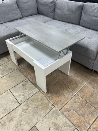 Mesa de centro con superficie elevable. - Mecanismo de elevación. - Amplio espacio de almacenamiento interior. Medidas 90x50 altura 46/57