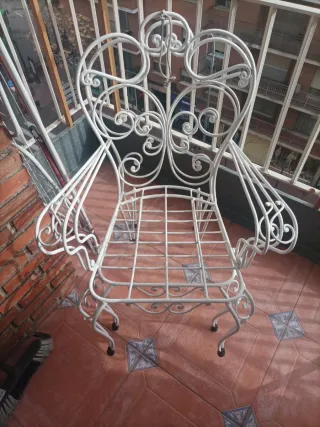 Conjunto de mesa y dos sillas para tu terraza o jardín. - Mesa con sobre de madera 70x70 cm altura 73 cm de Ikea - Estructura de metal. - Sillas de Textileno con respaldo de 110 cm de alto y 60 cm de ancho y entran debajo de la mesa