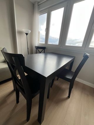Mesa redonda negra y 4 sillas