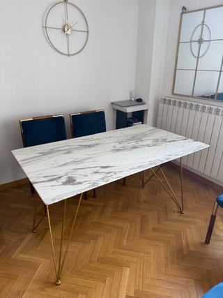 Mesa de comedor de mármol y madera con 6 sillas