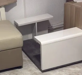 Mesa baja de diseño moderno, perfecta para complementar tu sala de estar. - Acabado en color blanco. - Fabricada en madera. Para recoger en getafe centro en horario de mañana de 9 a 14