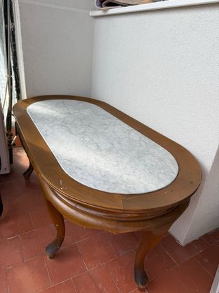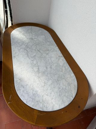 Mesa de madera y mármol ovalada