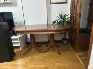 Mesa redonda de madera maciza muy firma y en muy buen estado