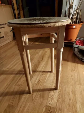 Mesa auxiliar redonda de madera y corcho
