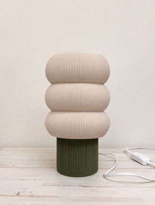 Lámpara de mesa moderna con diseño acanalado, ideal para dormitorio, salón o escritorio. Fabricada mediante impresión 3D con acabado de alta calidad. Compatible únicamente con bombillas LED (Incluye bombilla) Características: Pantalla con textura acanalada Base disponible en color verde o chocolate Luz LED cálida y acogedora Diseño decorativo y minimalista Producto nuevo. no leer lámpara de mesa, lámpara mesita noche, lámpara moderna, lámpara diseño, iluminación LED, decoración hogar, estilo nórdico, lámpara dormitorio, impresión 3D