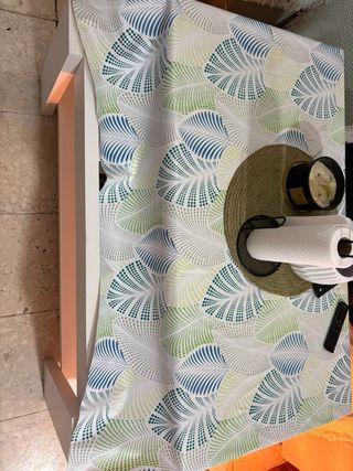 Mesa de camilla de buena calidad con un diseño práctico. - Fabricada en madera. - Color beige y marrón. El cristal está apostillado por un lateral. Lleva 2 manteles, uno beige y otro gris.