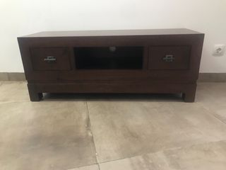 Mueble de televisión y mesa auxiliar . - Dos cajones con tiradores metálicos.