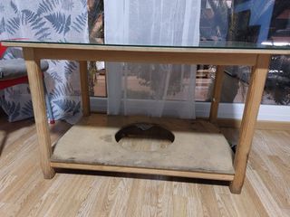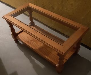 Bonita mesita de centro pino con cristal en perfecto estado mejor verla me costo 185€ tlfn696296887