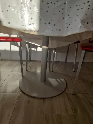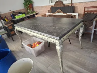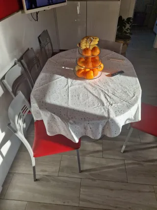 Mesa de comedor grande 60€ siempre con mantel sin rayas. Las sillas se venden aparte a 5€ ya que hay q tapizarlas nuevamente. Si te llevas las sillas y la mesa 80€.