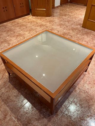 Mesa camilla con estructura de madera y tapa de cristal. - Combina la calidez de la madera con la transparencia del cristal.