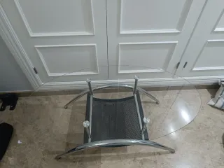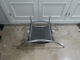 Elegante mesa con un sobre de cristal muy grueso y una estructura de metal.en perfecto estado mejor verla ideal para juego de cartas es muy bonita me costo 545€ tlfn 696296887 - Diseño moderno y sofisticado. - Combinación de colores negro y transparente.