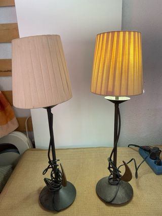 Se venden dos lámparas de mesa con un diseño único. - Base y pie de metal. - Pantallas de tela plisada.