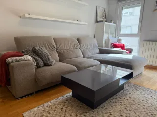 Vendo mesa de salón elevable, práctica y funcional, ideal para comer o trabajar desde el sofá. Color blanco, diseño moderno y fácil de combinar. Largo: 1 m Fondo: 55 cm Altura sin elevar: 45 cm Altura elevada: 56,5 cm La mesa está en buen estado y funciona perfectamente el sistema elevable. Perfecta para salones pequeños o como mesa auxiliar.