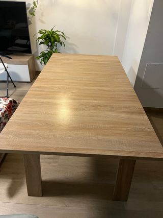 Mesa de salón con un diseño moderno y funcional. Perfecta para cualquier espacio. - Acabado en madera natural. - Patas robustas para mayor estabilidad. -Extensible