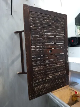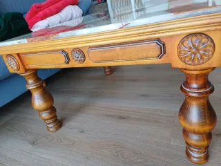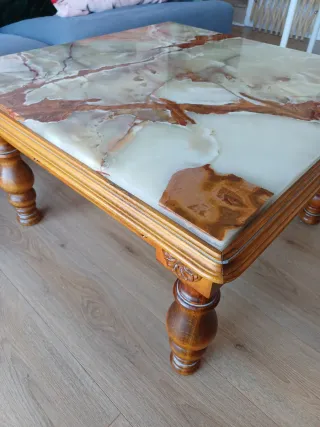 Mesa de mármol y madera. Muy buen estado. Robusta.