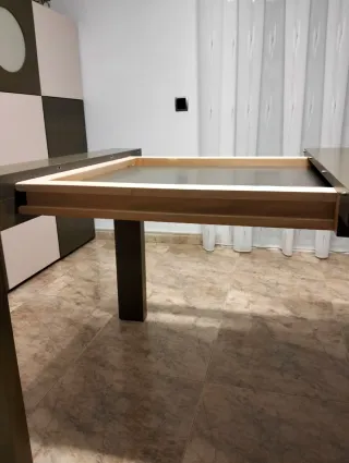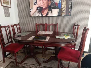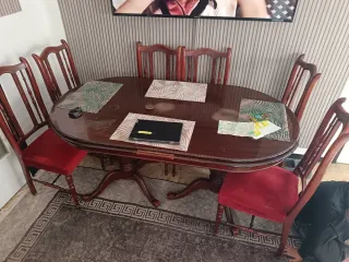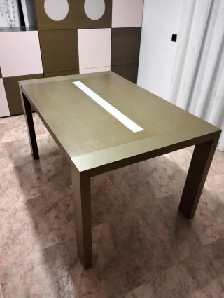 La mesa no la vendo por separado hasta que venda el resto de muebles del comedor ya anunciados. Nos urge, dejaré a buen precio quien quiera el comedor completo... Hazme oferta razonable con todo el mobiliario completo... Si quieres mas detalles y prefieres pideme tf. Gracias Elegante mesa de comedor robusta y extensible con un diseño moderno y acabado en chapa barnizada. Mide 140x90 plegada y tiene dos extensiones de 50 cms cada una. Con una extension 190cms Total abierta 240cms (10 comensales) No leer: Salon , menjador , pis , bufet , lloguer , aparador , mobles , cadires , mesa , taula , piso , casa
