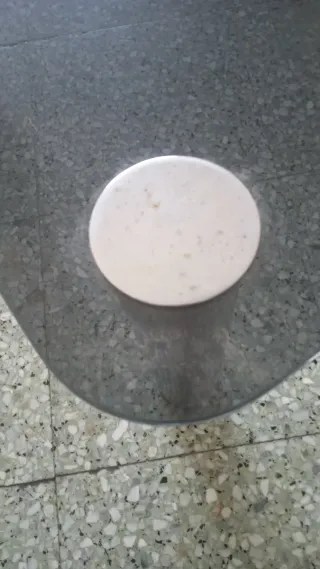Elegante mesa de centro con superficie de cristal y patas metálicas. - Diseño moderno y minimalista. - Patas cilíndricas plateadas. tiene un poquito de óxido como se ve en la foto. La regalo