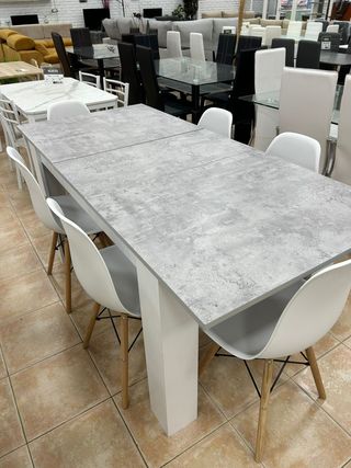 680*558*196 ☎️ Mesa de comedor blanca extensible moderna nordica. Gracias a su sistema extensible, pasa de 138 cm a 178 cm, permitiendo sentar cómodamente de 4 a 6 personas. Acabado moderno en color claro. 👉 Medidas: Largo: 138 a 178 cm Ancho: 80 cm Alto: 79 cm 👉 Precios: Mesa + sillas: 210€ Mesa sin sillas: 90 € Ideal como mesa de comedor, mesa extensible para salón, mesa moderna o mesa para cocina grande.