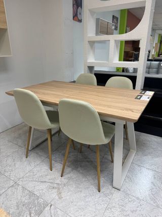 680*558*196 ☎️ ✅Precio mesa: 70€ ✅Mesa 6 sillas: 154€ Mesa de comedor NUEVA estilo moderno, con acabado en madera tono roble claro y estructura en color blanco. Diseño funcional y elegante, perfecta para salón, cocina o comedor. Su estilo nórdico combina con todo tipo de decoración. Fabricada con materiales resistentes y superficie fácil de limpiar. ✔ Características: Nueva sin uso Diseño moderno / nórdico Superficie efecto madera Estructura robusta 📐 Medidas: Largo: 140 cm Ancho: 80 cm Alto: 75 cm