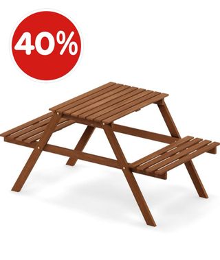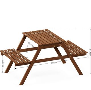 Mesa merendero de madera para exterior. - Ideal para jardines y terrazas. - Diseño rústico y funcional. Madera Meranti roja oscura tratada con aceite de teca: más duradera y resistente al agua.