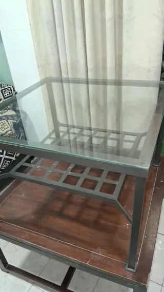 Mesa de cristal y metal