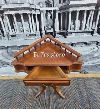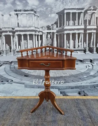 MESA RINCON AUXILIAR Mesa ricon auxiliar , Madera macizadehaya , Barnizada en color nogal , Pata central torneada , Un cajón , Se encuentra en Mérida , Recoger en tienda , medidas ; ANCHO ◇ 42 X 42 ALTO ◇ 70 PRECIO 35 € #segundamanoeltratero