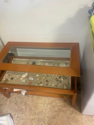 Mesa de centro cristal y madera