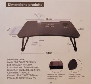 Mesa de trabajo portátil con un diseño moderno y funcional. - Incorpora puertos USB para cargar dispositivos. - Dispone de un práctico portavasos. - Superficie con acabado imitación madera.