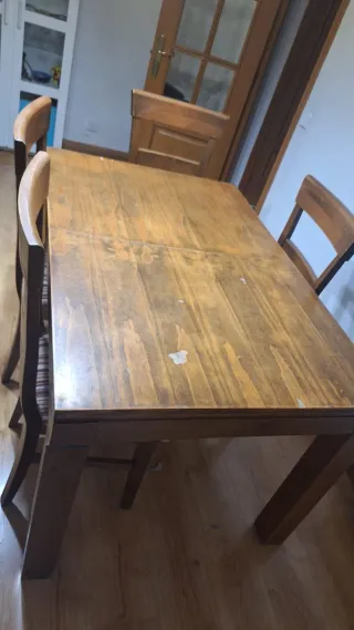 Vendo mesa de comedor extensible con un diseño moderno y elegante, perfecta para cualquier hogar. Su acabado en madera aporta calidez y estilo. - Patas robustas para mayor estabilidad. - Superficie lisa y fácil de limpiar. - Extensible (180x90x74 extendida)