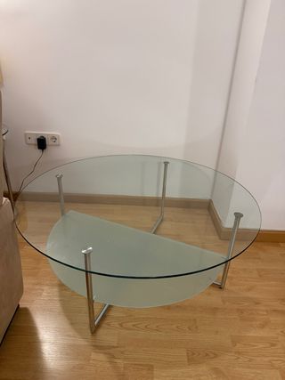 Elegante mesa de centro con un diseño moderno. - Superficie de cristal transparente. - Patas de metal plateado. - precio negociable - urge venta recoger en salobreña.