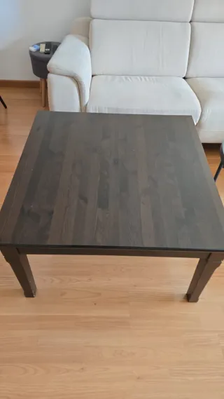 Mesa baja con un diseño moderno y elegante. Posibilidad de entrega en mano en Motril, Granada o Fuengirola -90x90, 55cm altura - Cajón inferior - Tablero de madera con acabado oscuro. - Patas robusta
