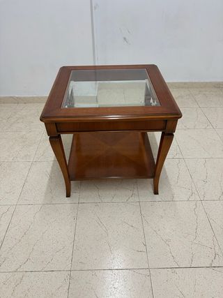 Mesa auxiliar madera y cristal